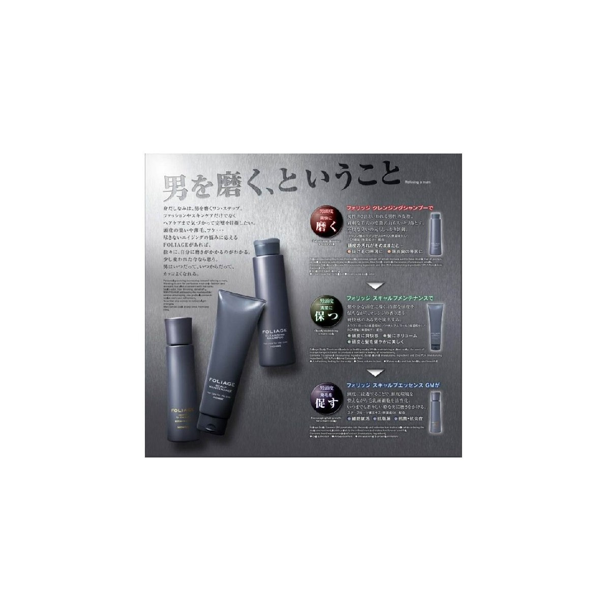 フォリッジ クレンジングシャンプーは、パワフルな洗浄力で女性の2倍といわれる男性の皮脂はファイトクレンジングでガッツリ洗浄。