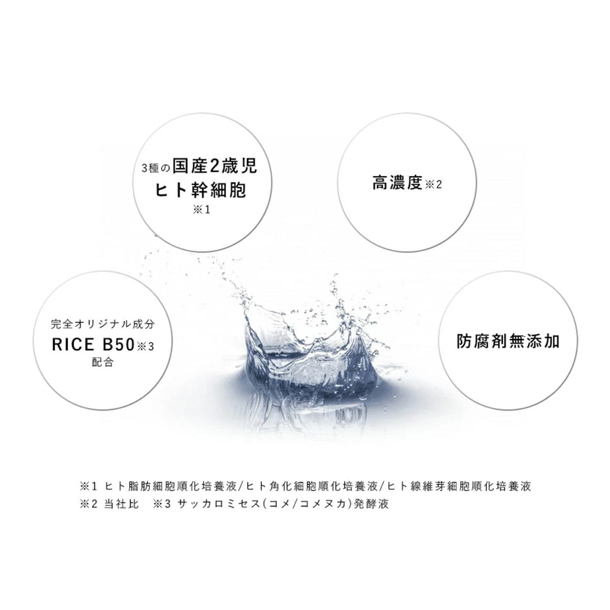 ヒト角化細胞順化培養液、バチルス(バラ花・ダイズ)発酵液、コメ由来エキス、ヘキサンジオール、酸化銀、アルギニン、フィチン酸